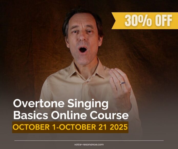 You can now learn the basics of overtone singing with me through my new online course Overtone Singing – Basics. It contains the essence of decades of practising and teaching overtone singing in one compact online course. The course lasts one month and includes three live Q&A sessions. That will help you to get started in an effective way. The package also includes three sound files that let you practise on various levels of complexity. You keep access to the course for one year, so you can repeat videos as many times as you like.